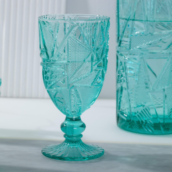 Handmade Embossed Vintage Glass Goblets Solid Multi-Colored Pressed Complex Geometric Patterns Durable Stylish Wine Glasses for