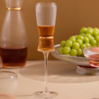 ถ้วยไวน์ทำจากแก้ววัสดุทำจากแก้วสำหรับงานเลี้ยงและงานแต่งงานตกแต่งเข็มขัดทองแบบเส้นแนวตั้งสวยงามทันสมัย